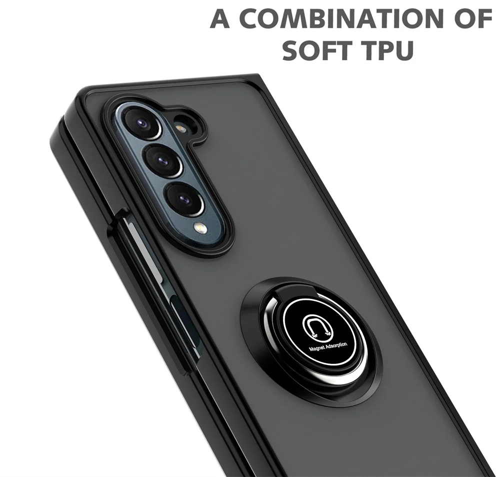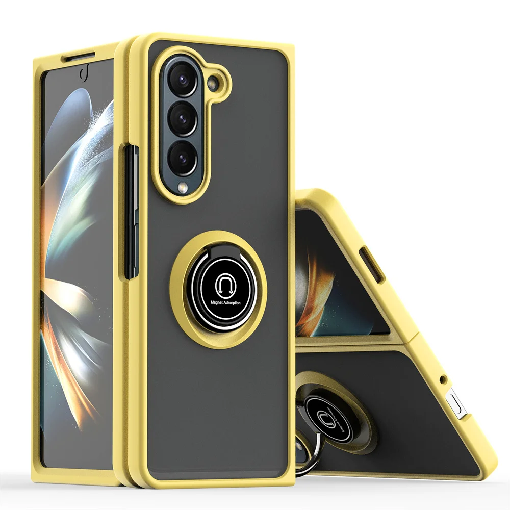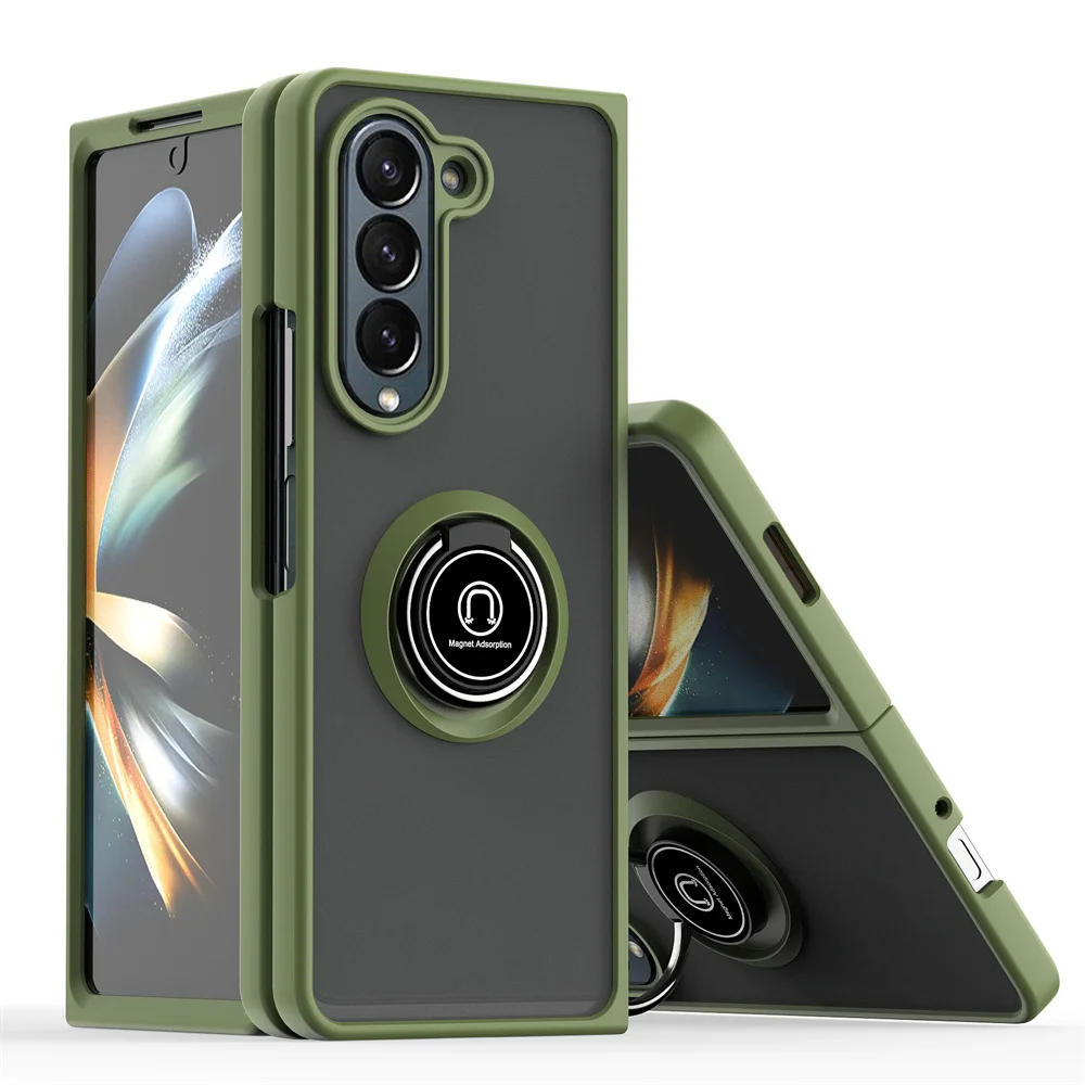 Matte Rotating Holder Magnetic Phone Case For Samsung Galaxy Z Fold 7 6 5 4 3 Car Ring Armor Shockproof Cover