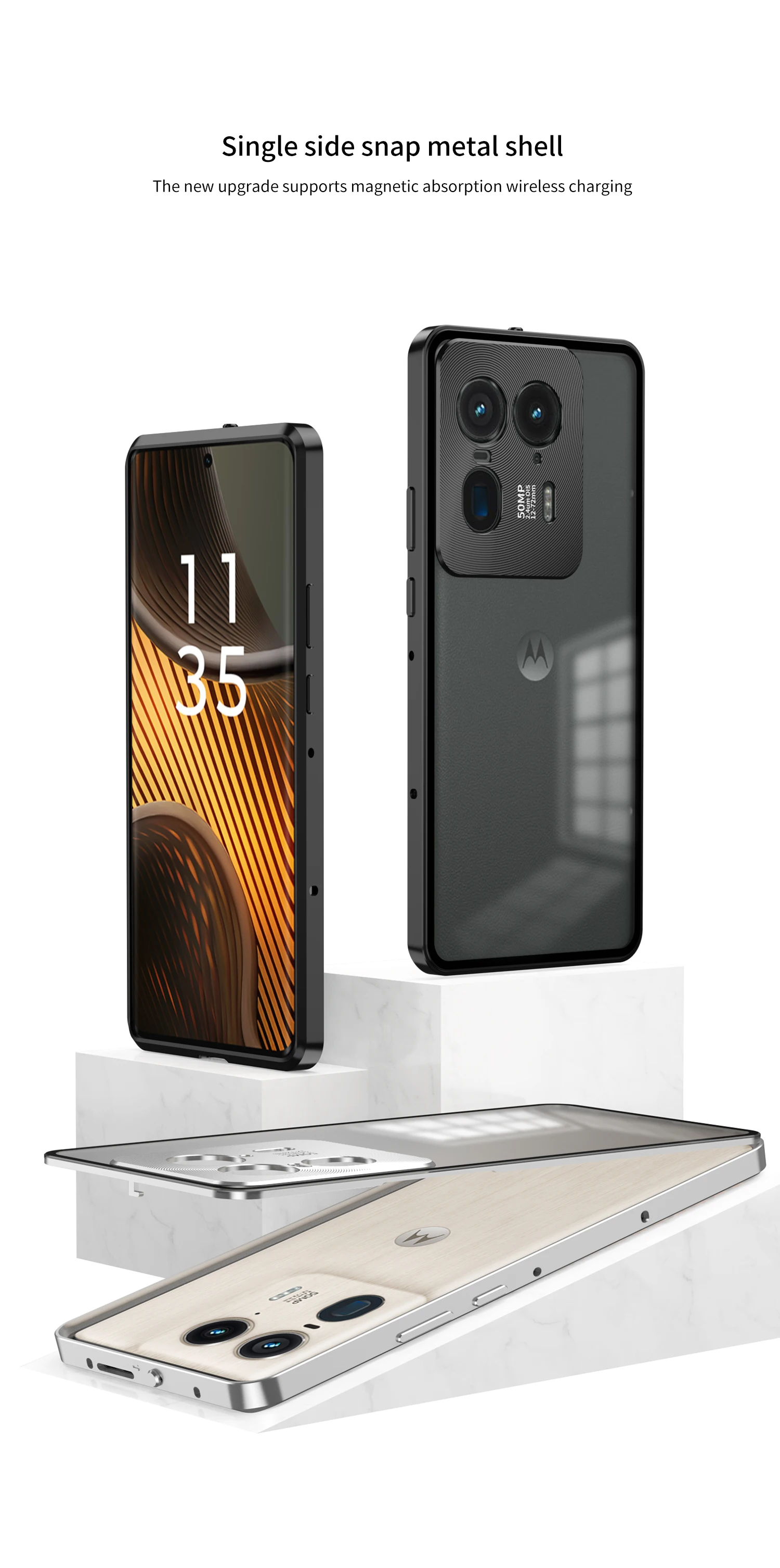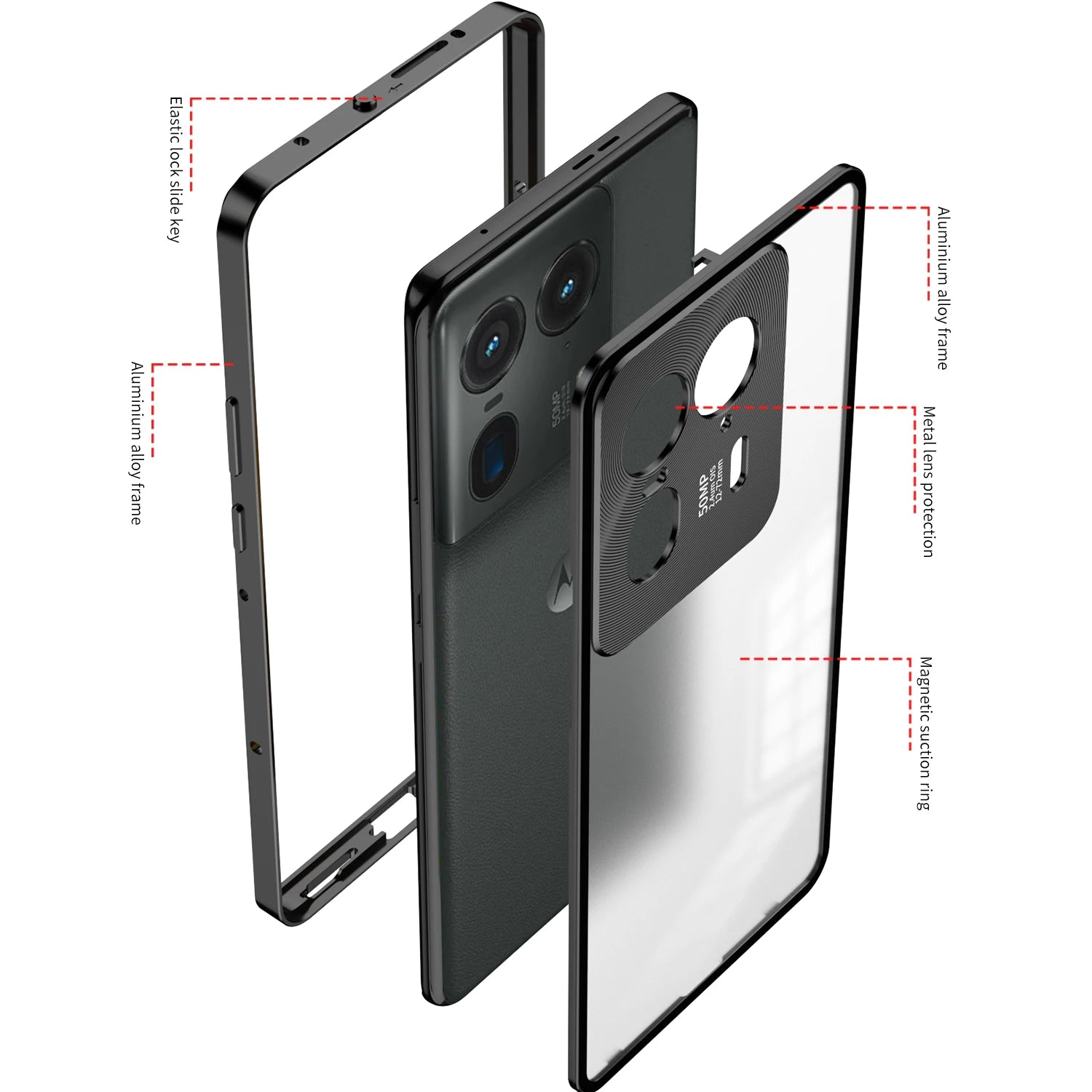 Metal Phone Case Elastic lock buckle For MOTO Edge 40 Pro 50 Ultra Plus 2023 Single sided Matte Clear Back Protect Cover cases