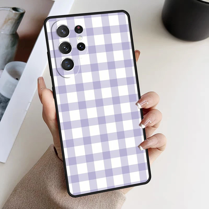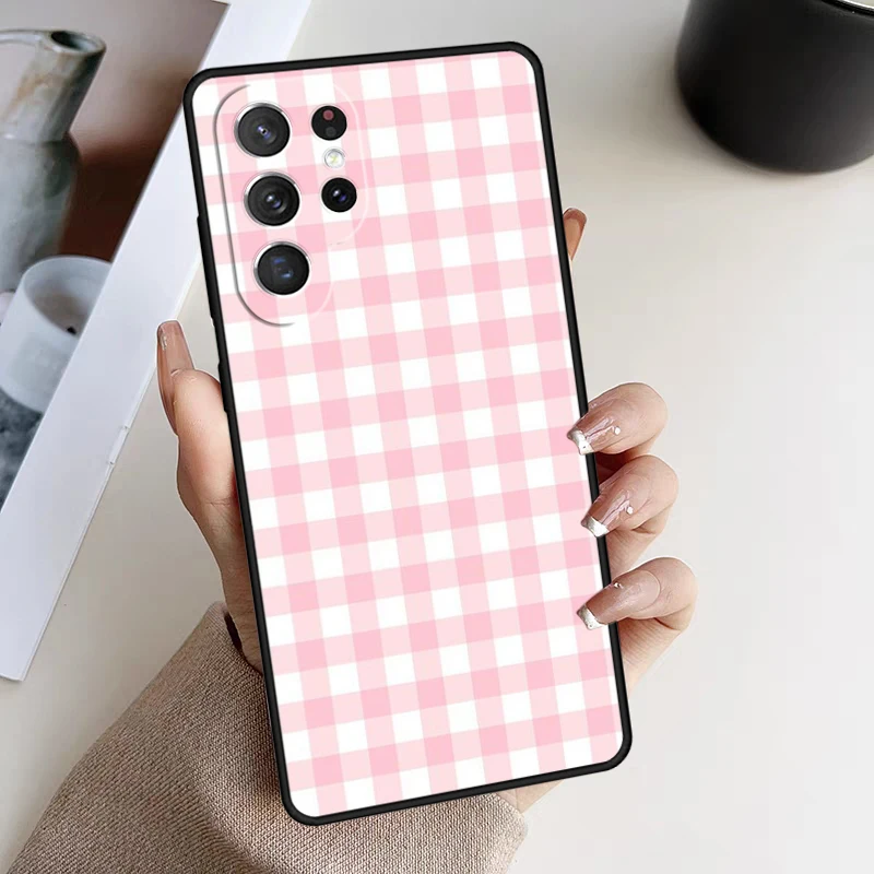 Phone Case For Samsung Galaxy S24 S23 S21fe S22 Ultra Plus Note 10 20 S8 S9 S10 Cover Pastel Gingham
