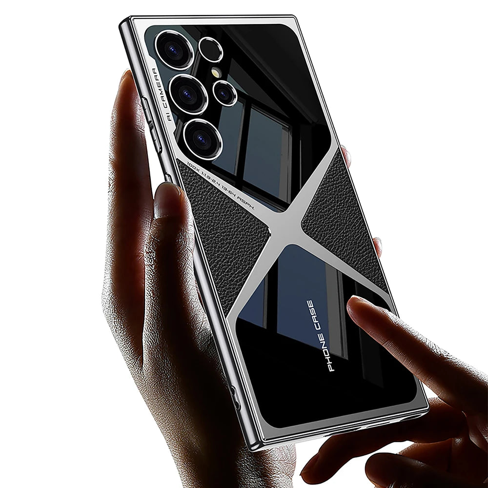 Plated Leather S24Ultra Phone Case For Samsung Galaxy S23 S24 S25 Ultra Supersonic TPU Soft Shockproof S25Ultra Protection Cover
