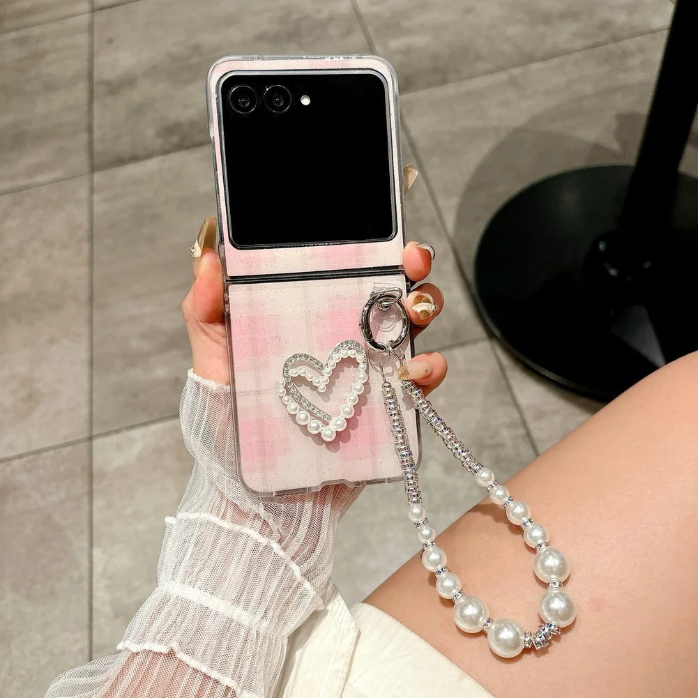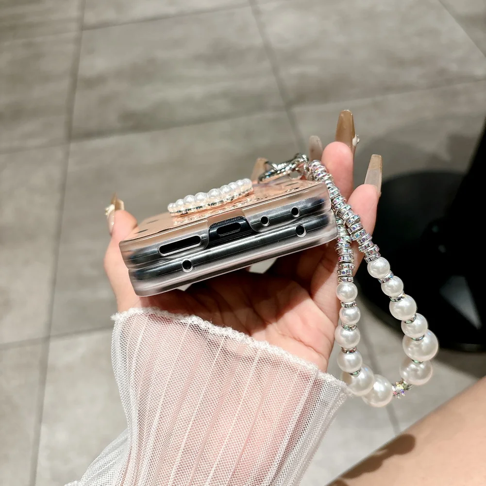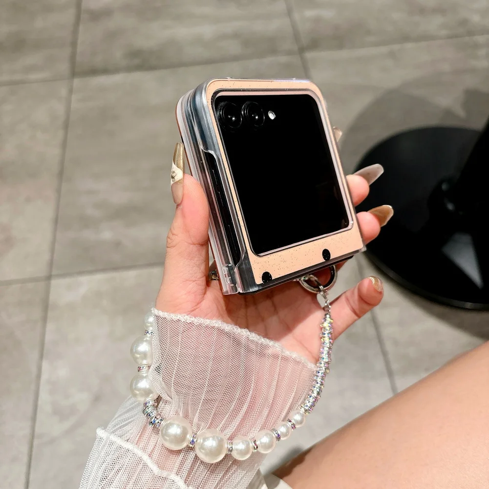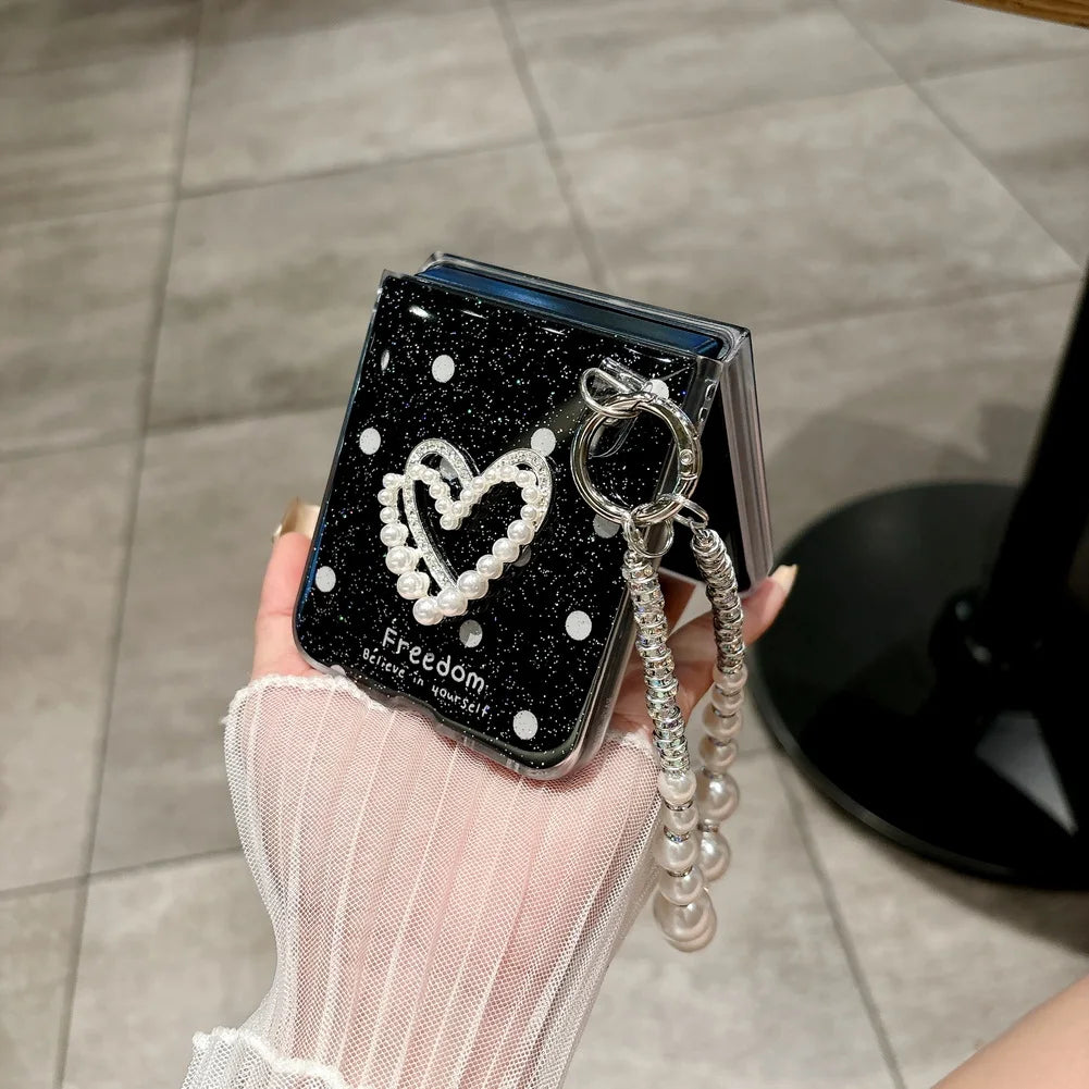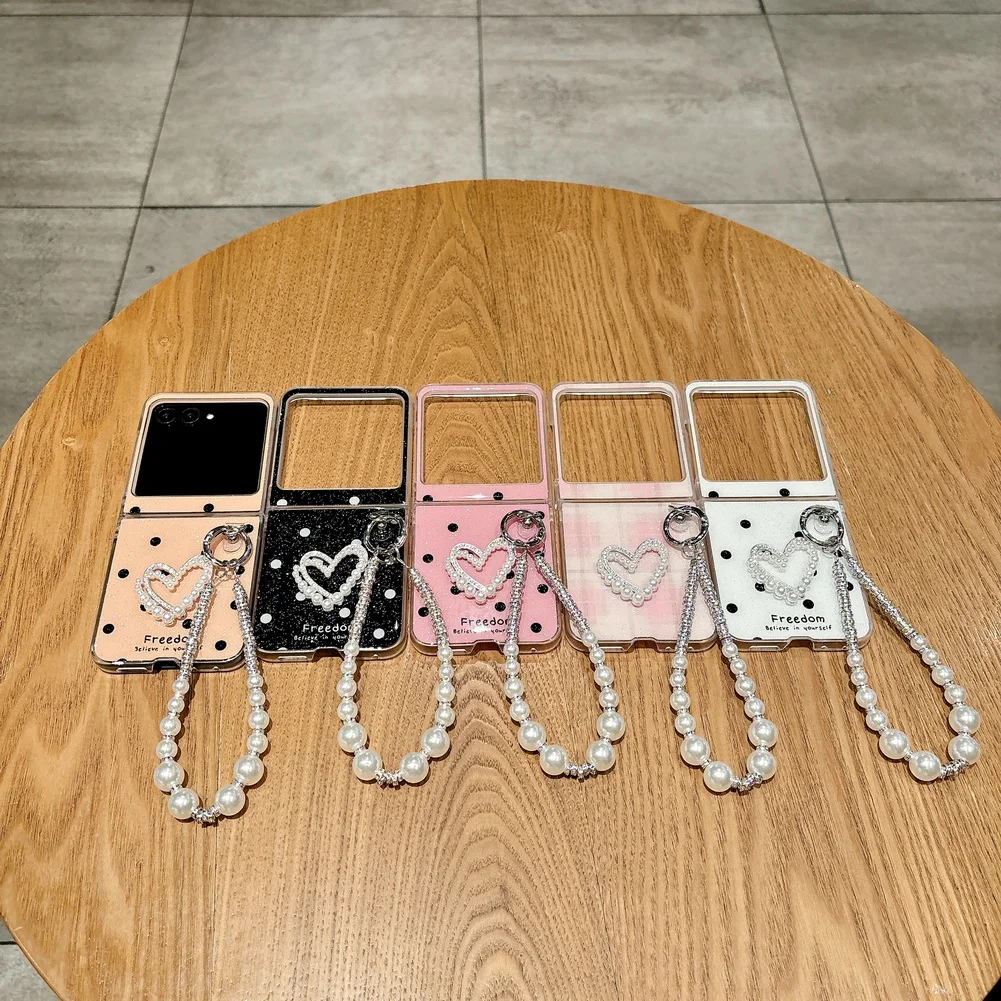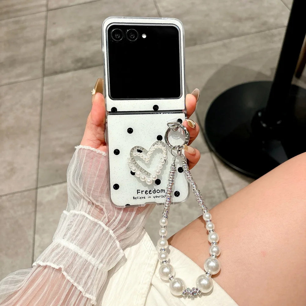 Polka Dot Glitter DIY Love Pearl Bracelet Phone Case For Motorola Razr 60 Ultra Moto Razr 60 2025 50 protect Cover