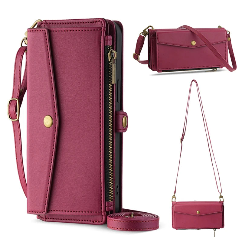 [Style] : Stylish solid color multi-function wallet phone case
