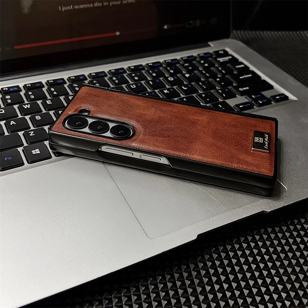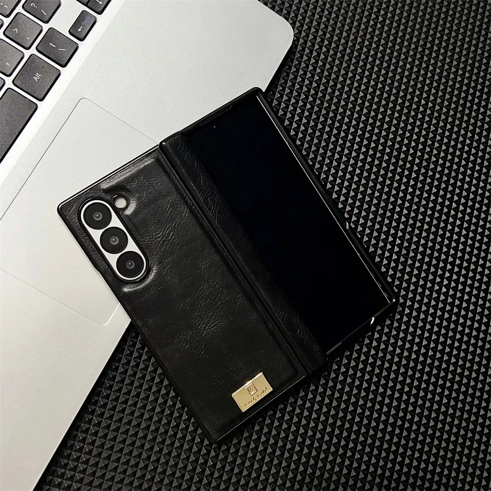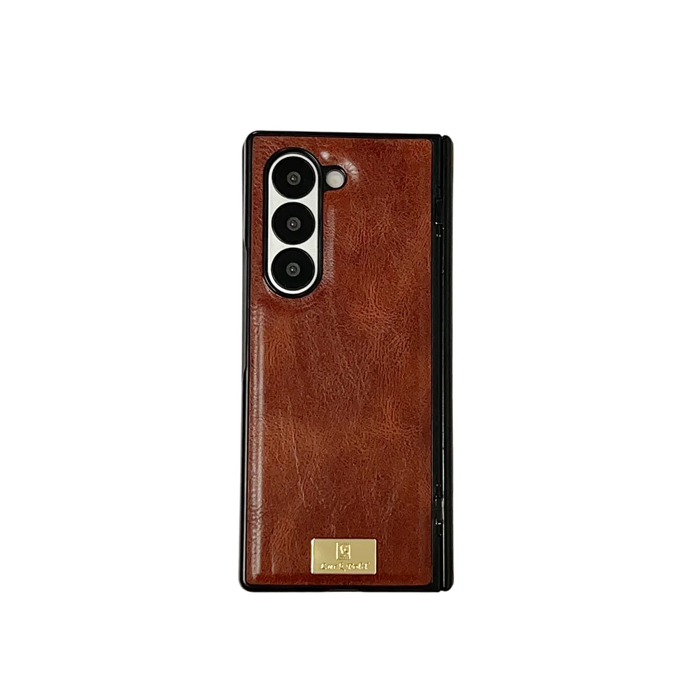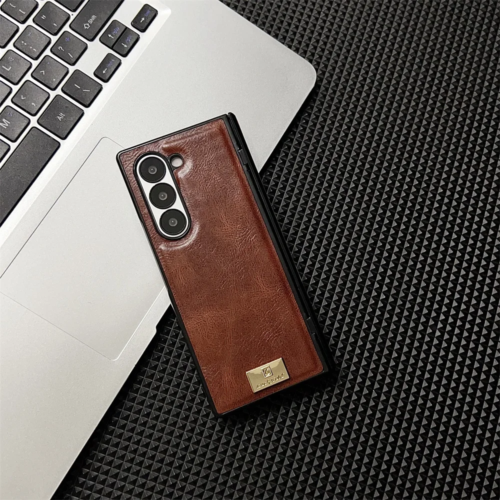 Retro Leather Hard Shell Shockproof Phone Case for Samsung Galaxy Z Fold 6 5 4 3 Fold6 Fold5 Fold4 Fold3 Hinge Protective Cover