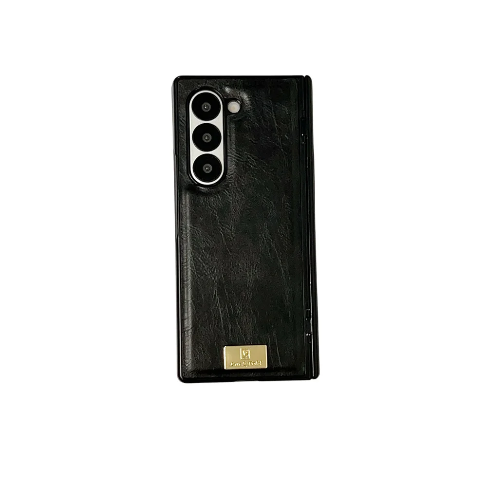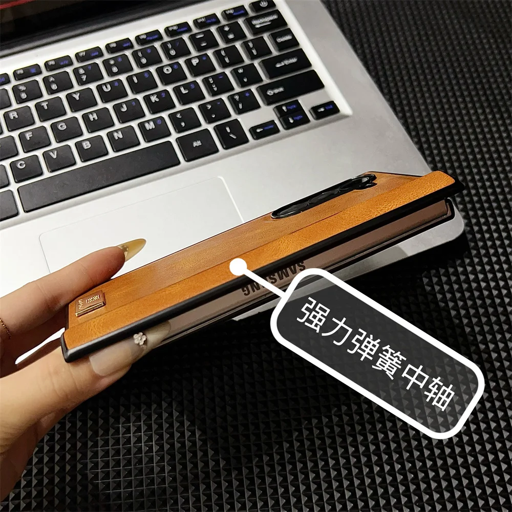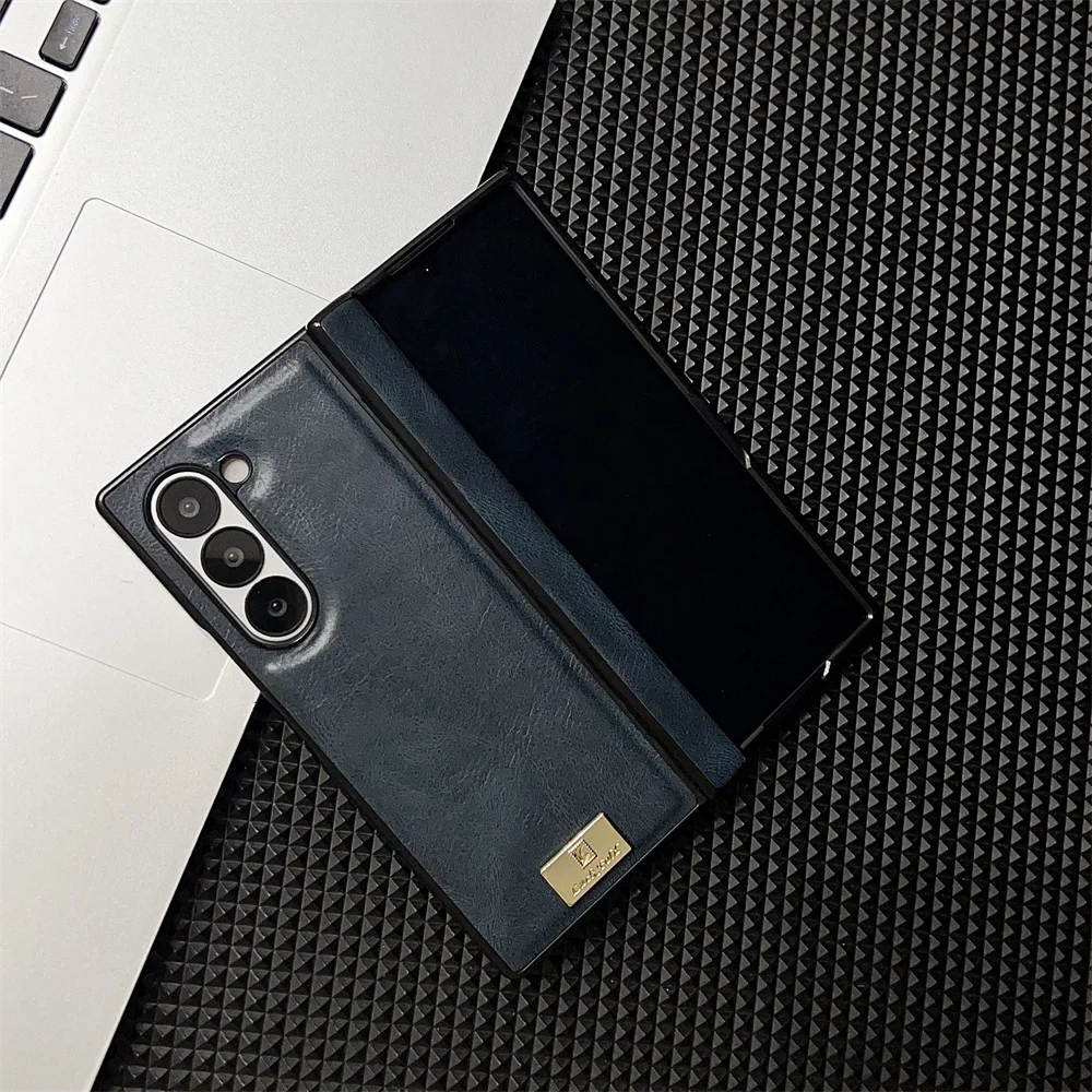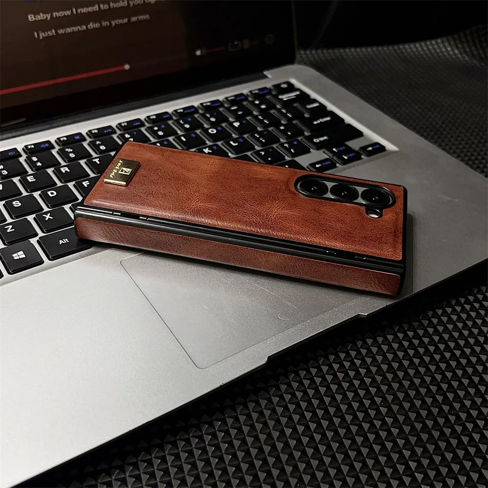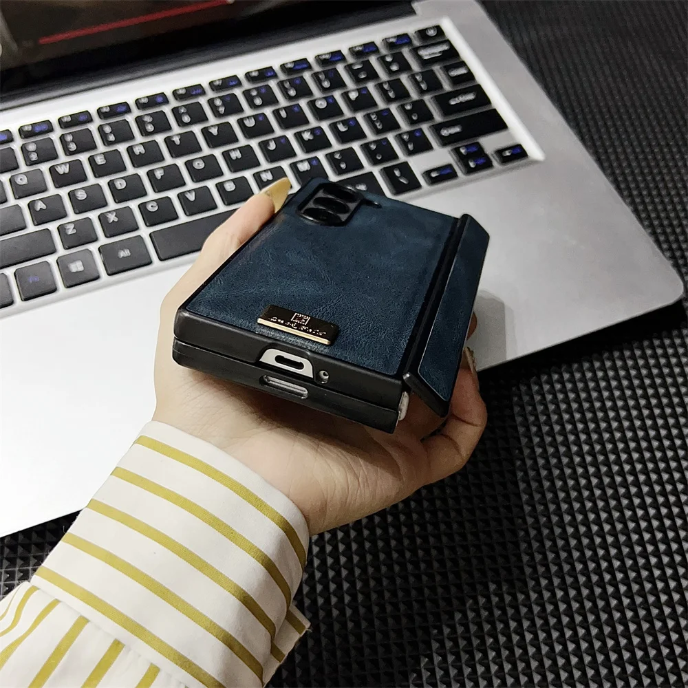 Retro Leather Hard Shell Shockproof Phone Case for Samsung Galaxy Z Fold 6 5 4 3 Fold6 Fold5 Fold4 Fold3 Hinge Protective Cover