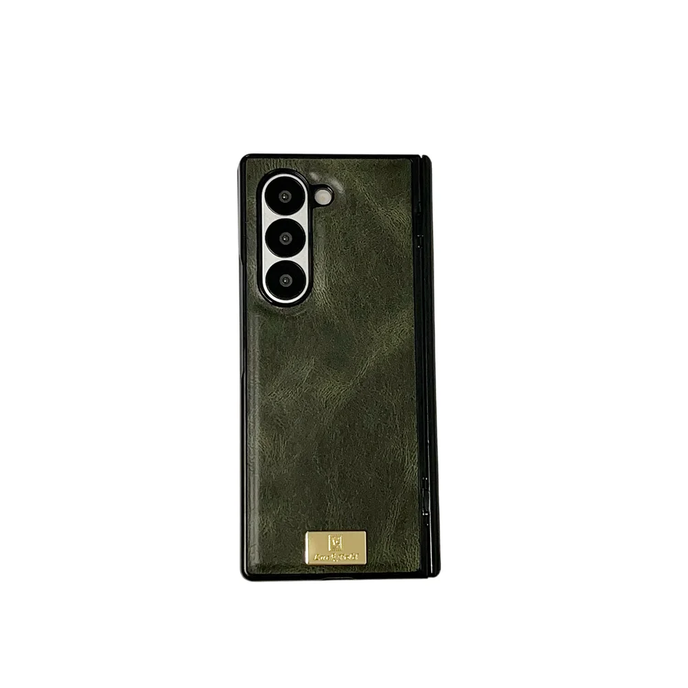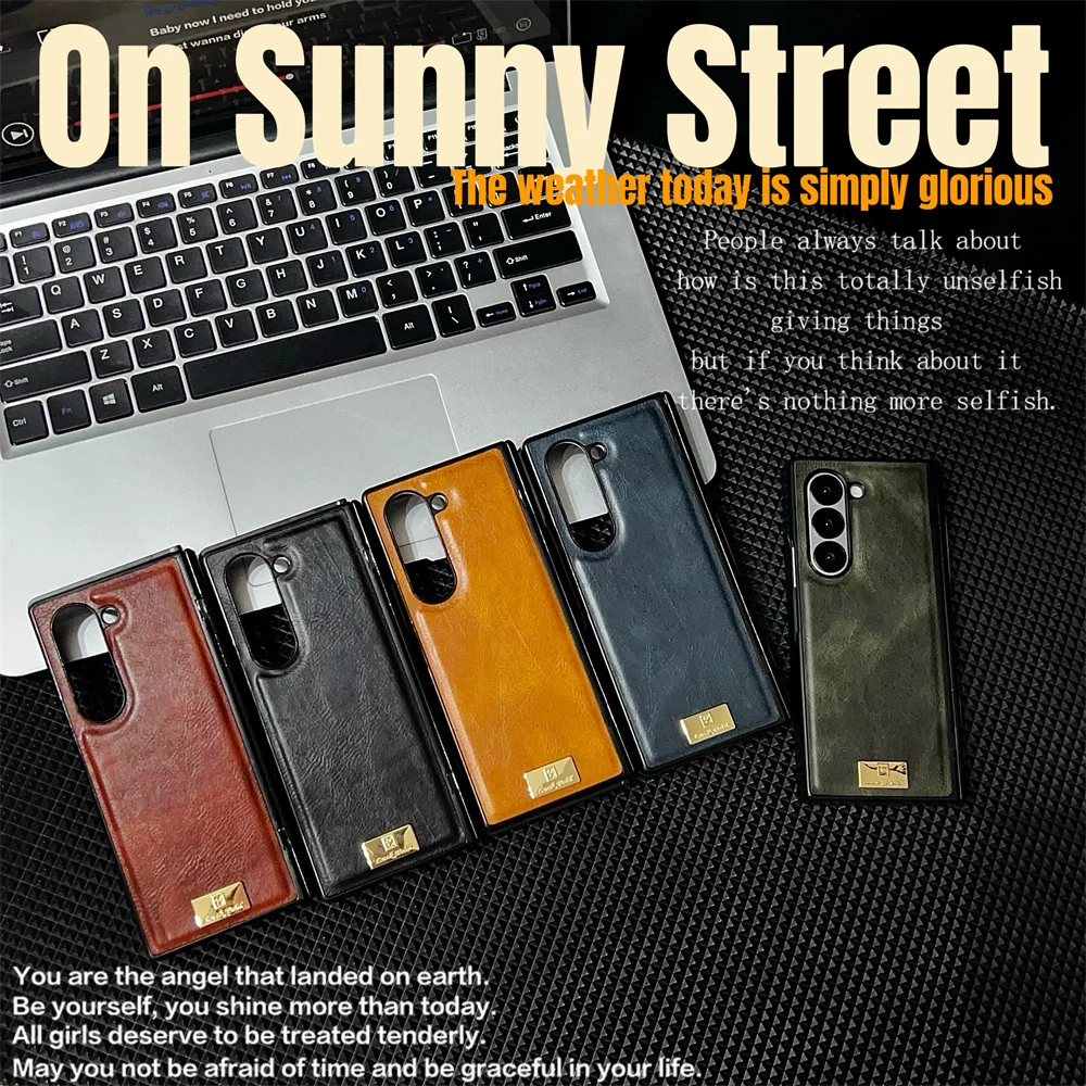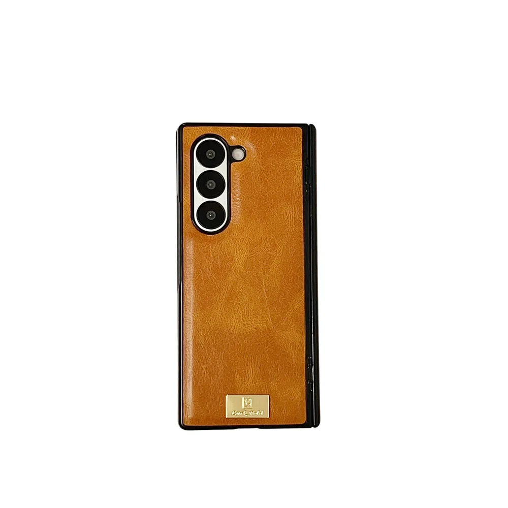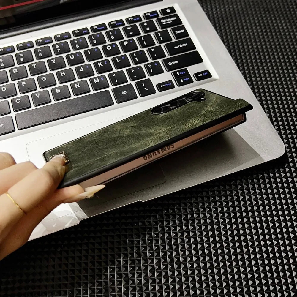 Retro Leather Hard Shell Shockproof Phone Case for Samsung Galaxy Z Fold 6 5 4 3 Fold6 Fold5 Fold4 Fold3 Hinge Protective Cover