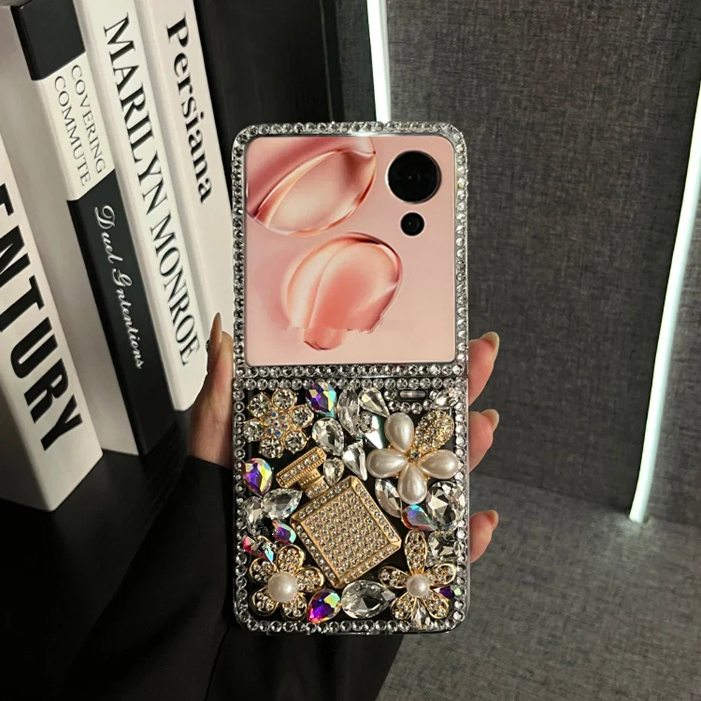 Rhinestone Case For Motorola Moto Razr 60 50 Ultra 2024 Cases 3D Perfumn Bottle Diamond Funda Transparent Telefon Kilifi Coque