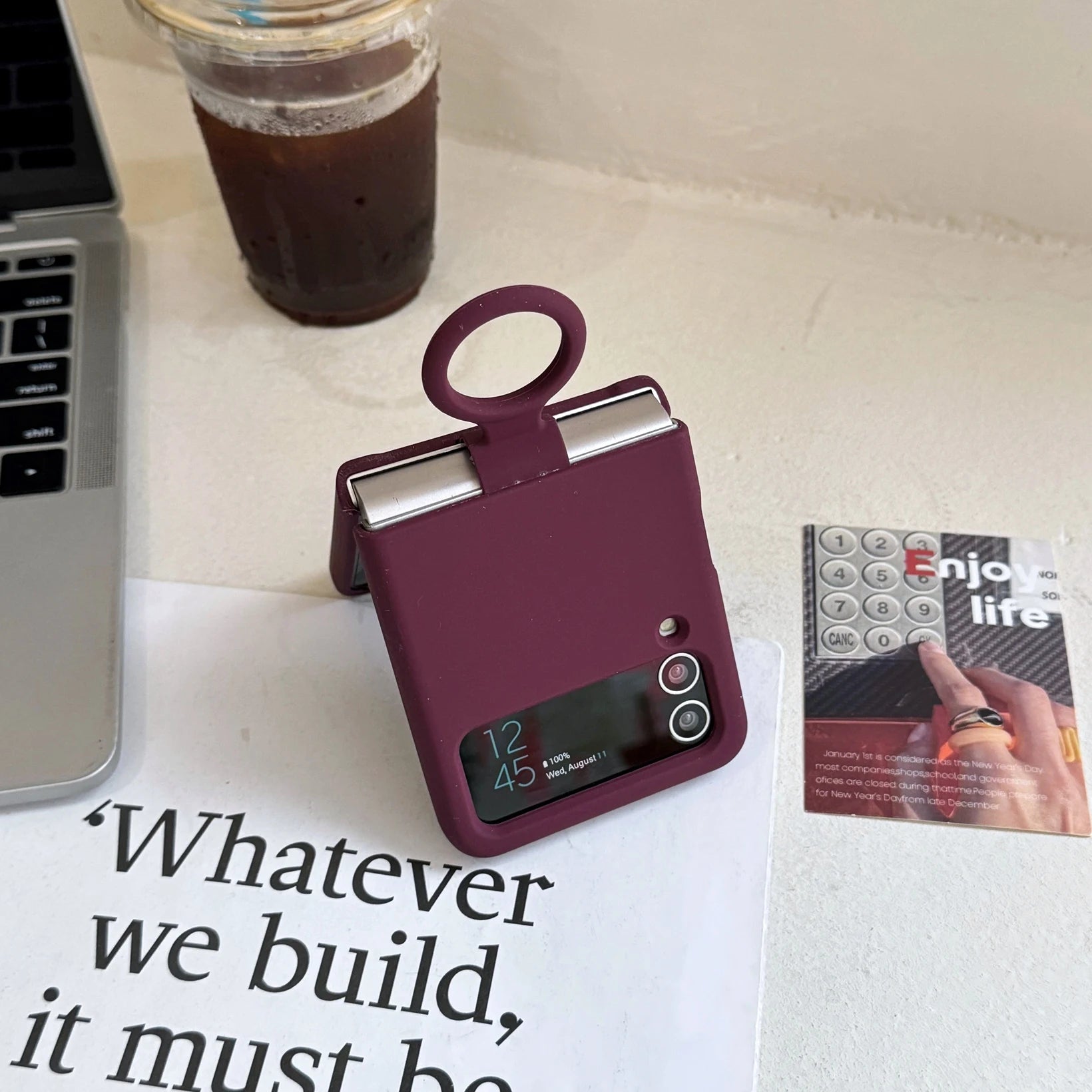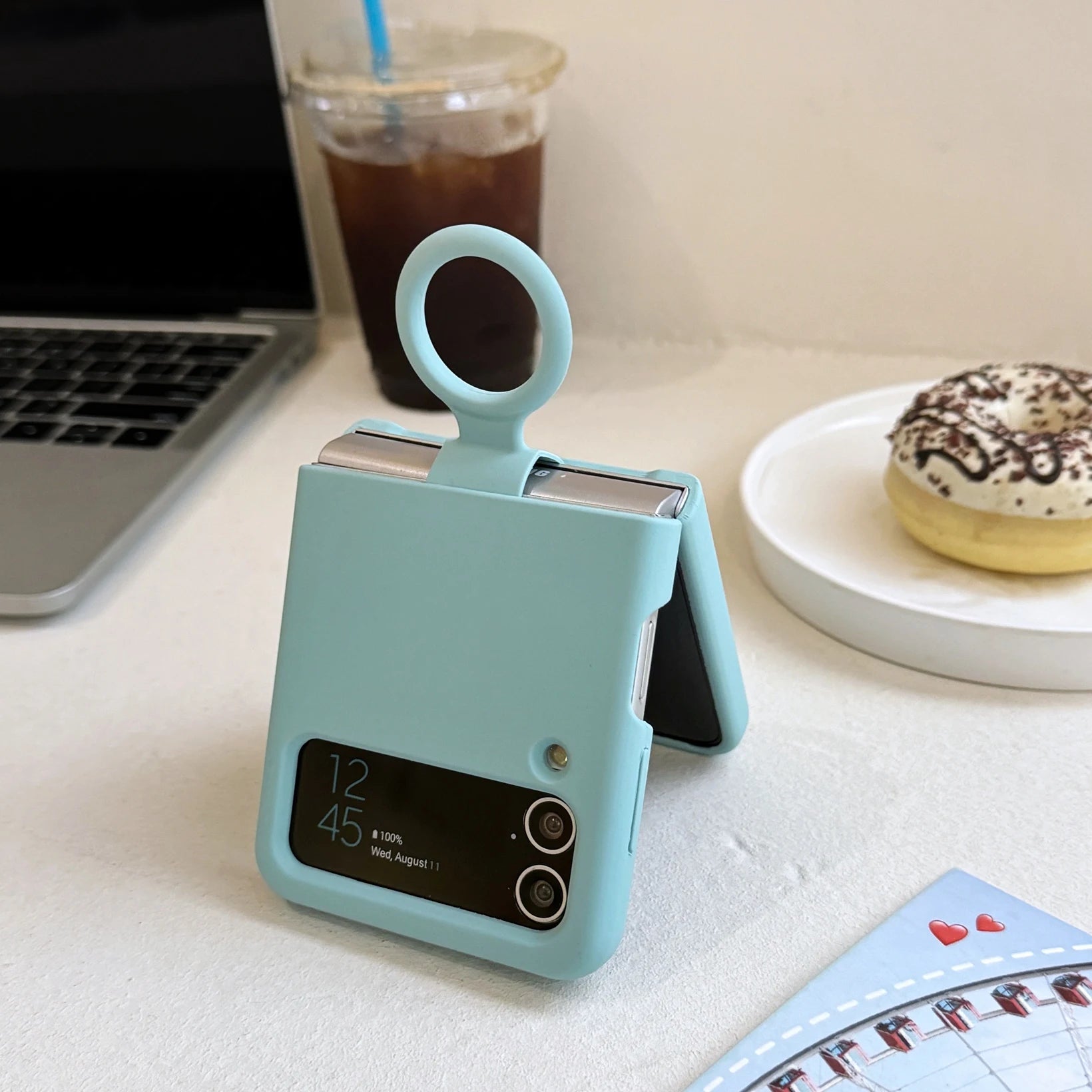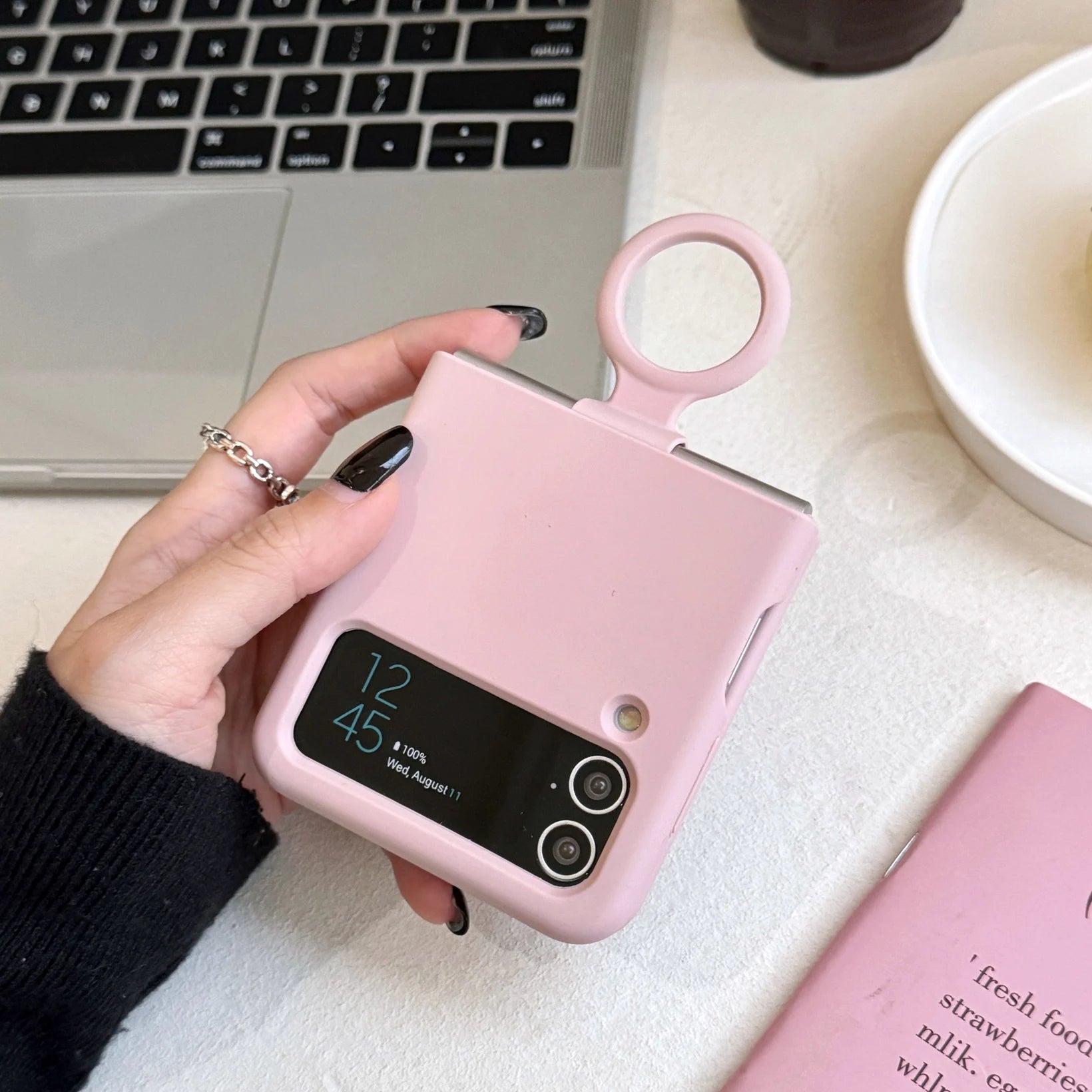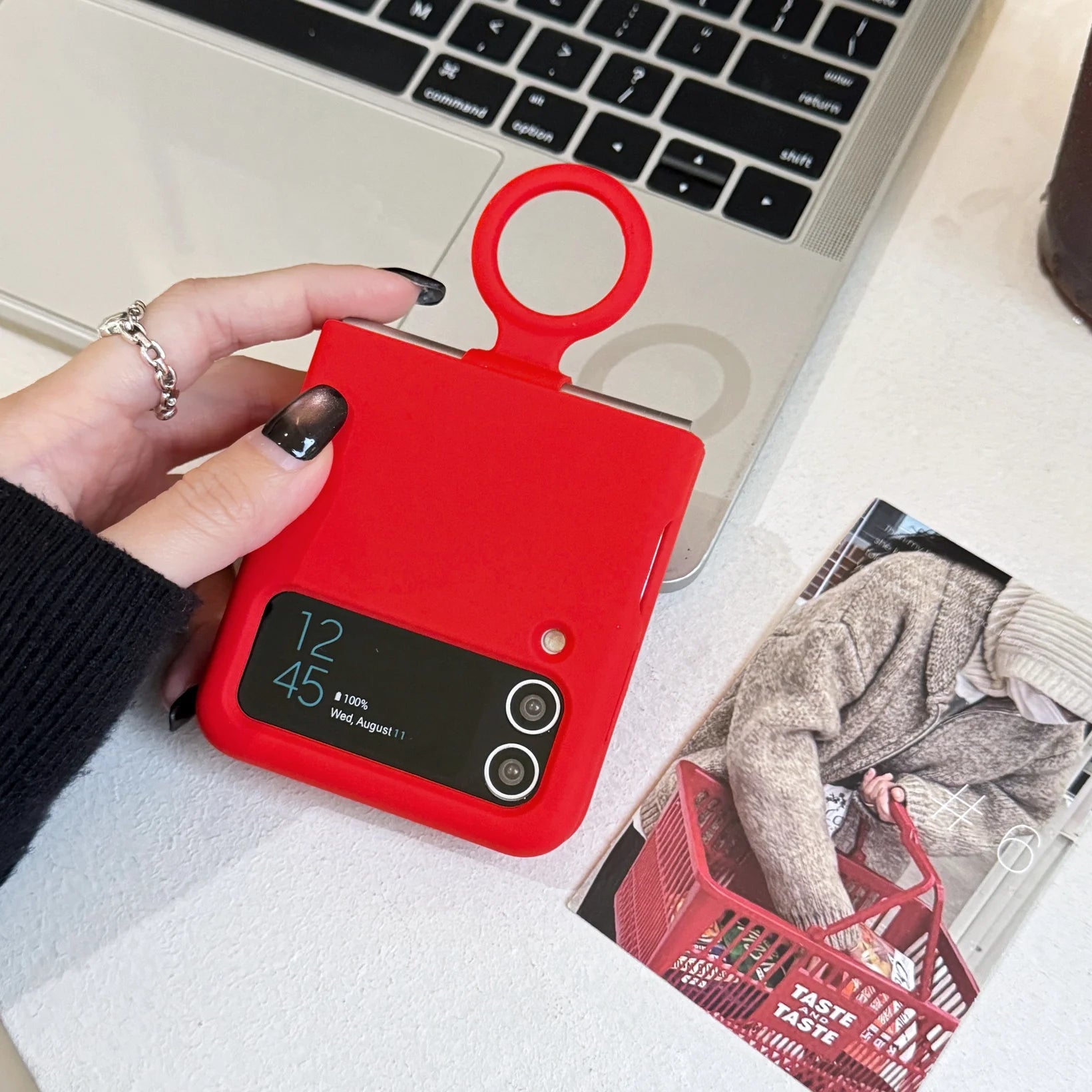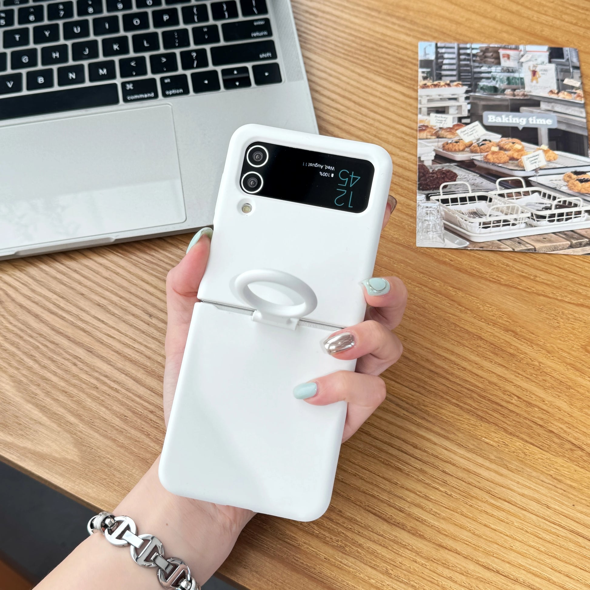 Ring Holder Matte Liquid Silicone Protective Cases For Samsung Galaxy ZFlip4 ZFlip3 Solid Color Soft Bumper Shockproof Cover