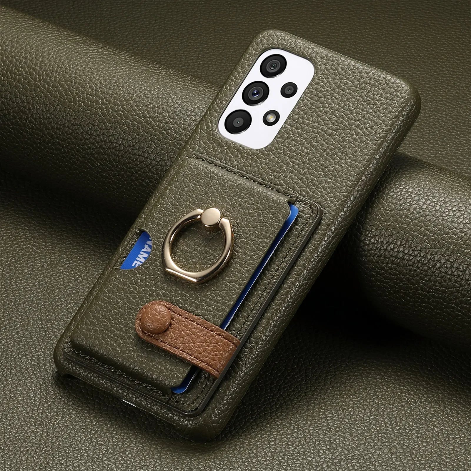 Leather Ring Phone Case for Samsung Galaxy S25 S23 S21 FE S24 Ultra S22 Plus A54 A14 A15 A25 A35 A55 Wallet with Card Holder Cover