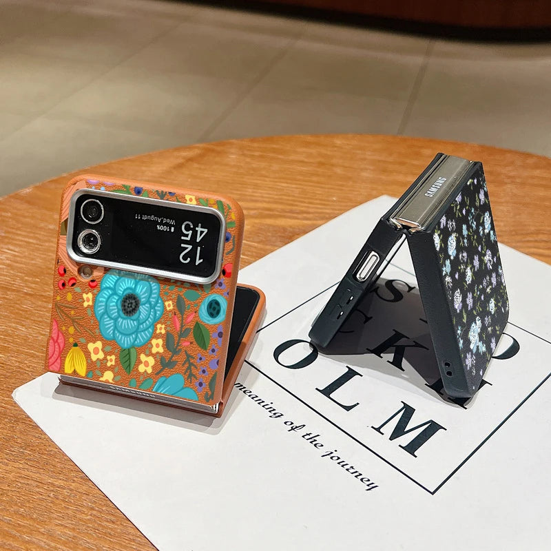 Romantic Garden Flower Case For Samsung Z Flip4 Flip5 Flip6 5G Leather Texture TPU Folding Cover For Samsung Galaxy Z Flip 3 4 5