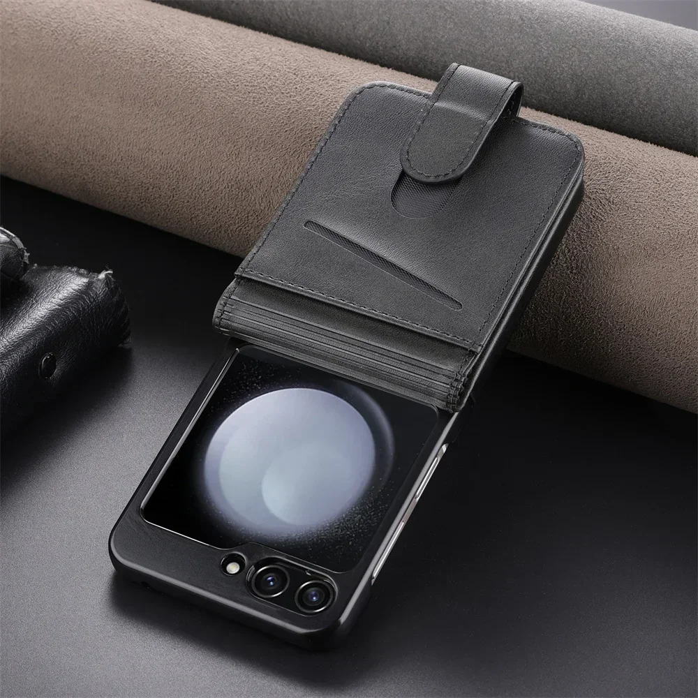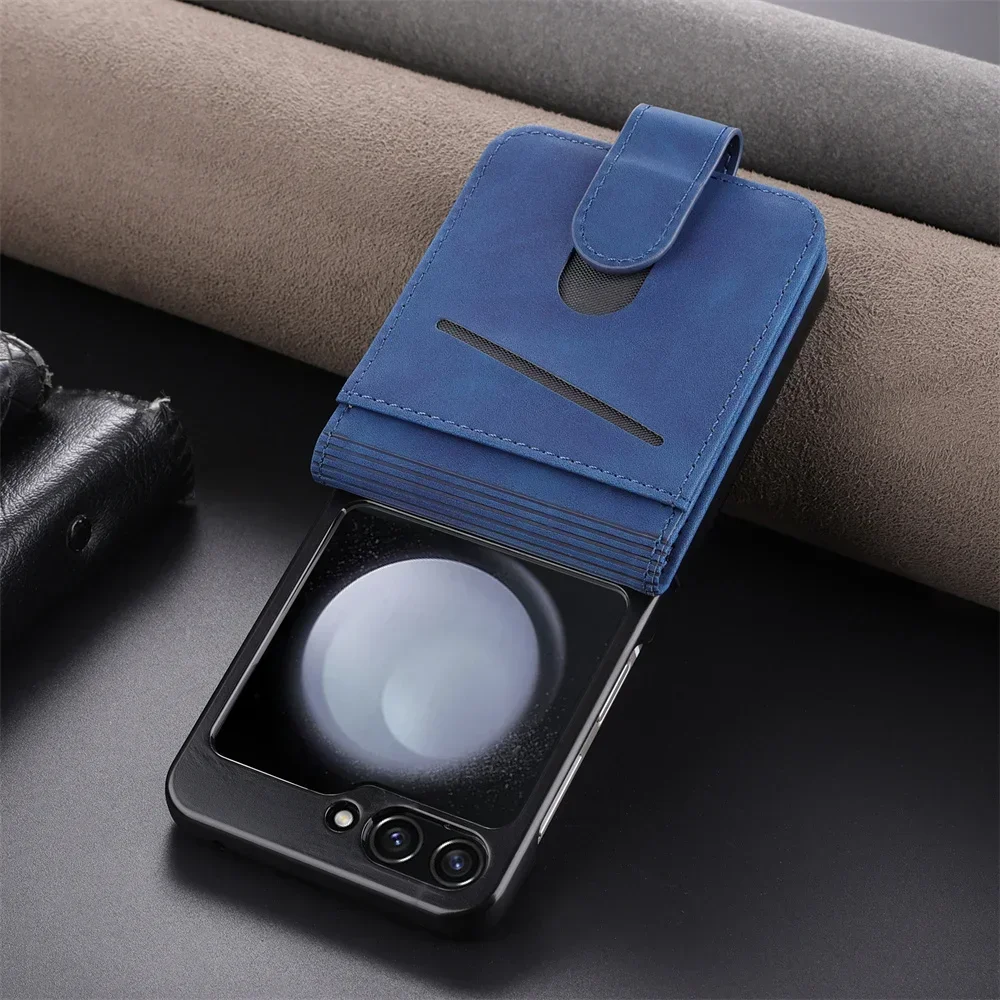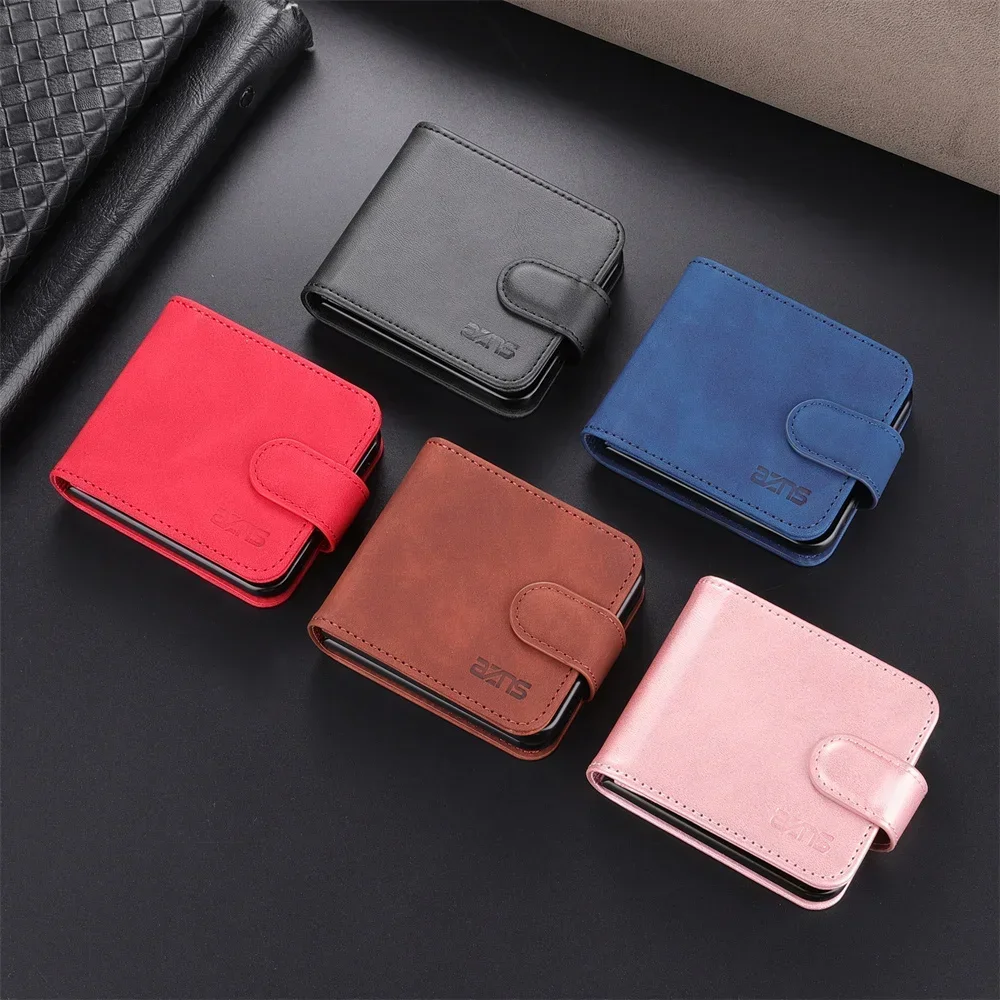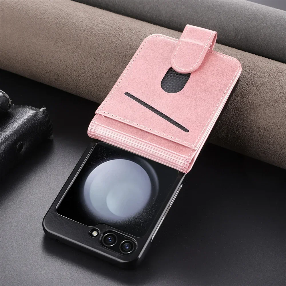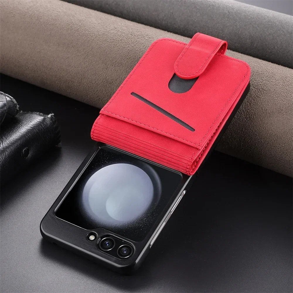 Simple Retro Pure Color Leather Phone Case For Samsung Galaxy Z Flip 7 6 5 4 3 Card Slot Bracket Wallet Shockproof Protect Cover
