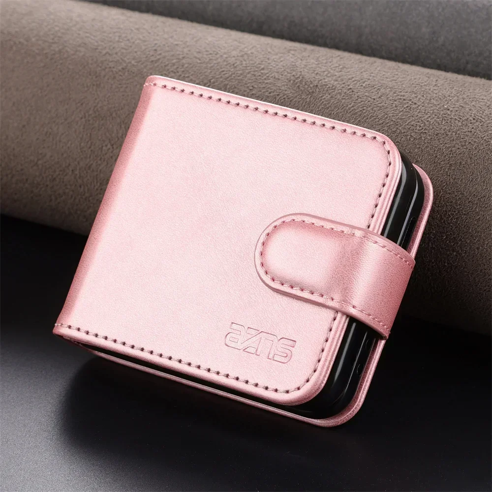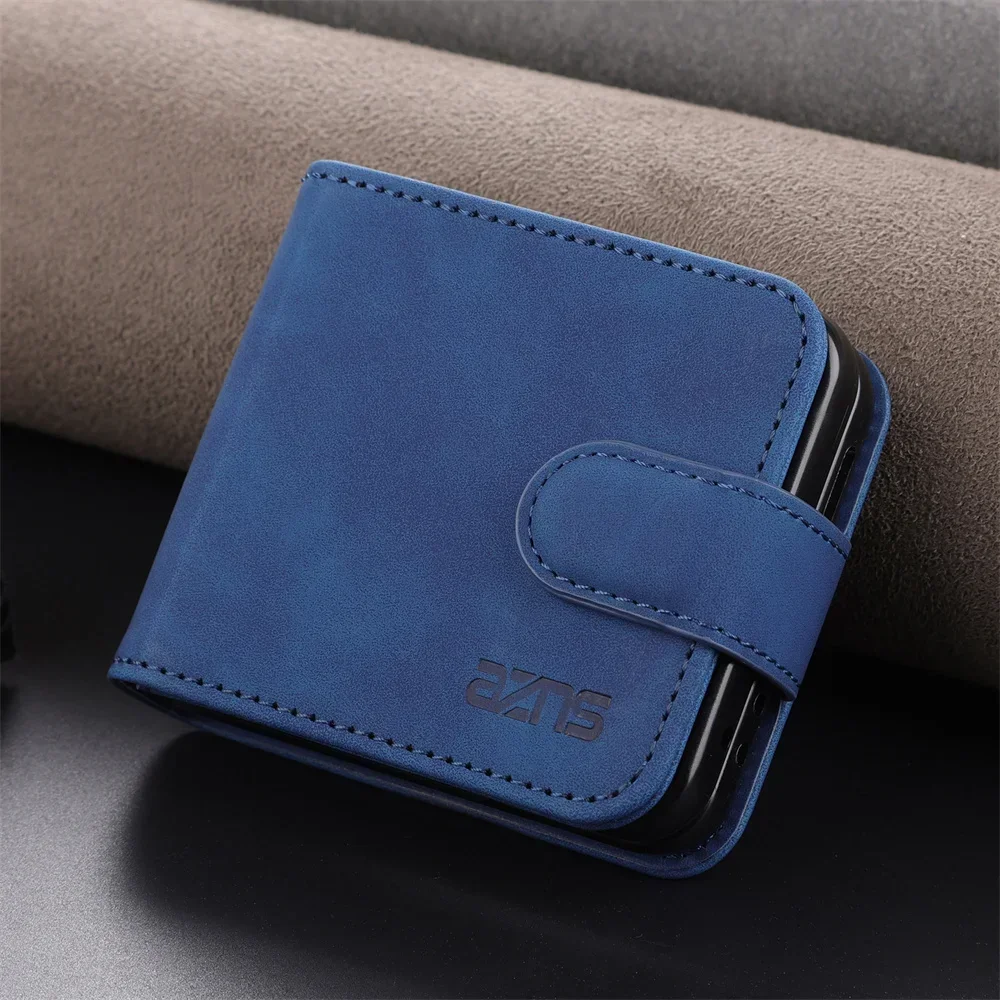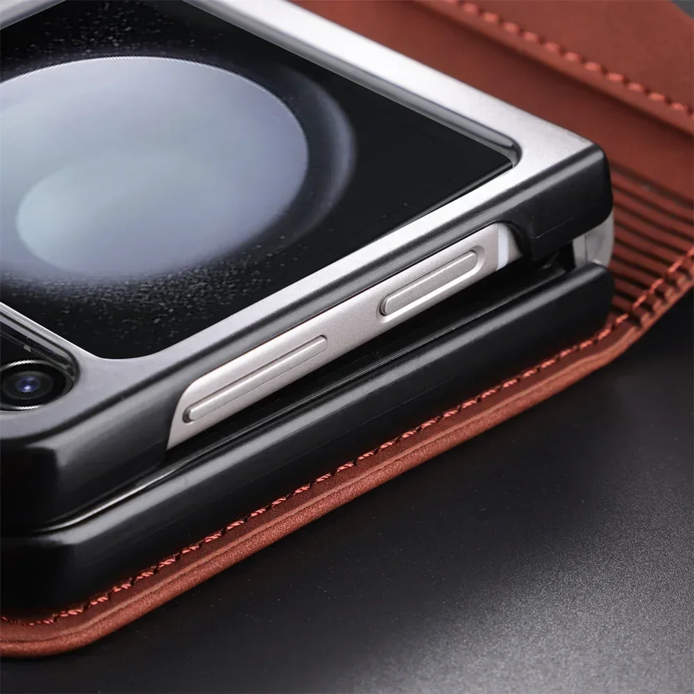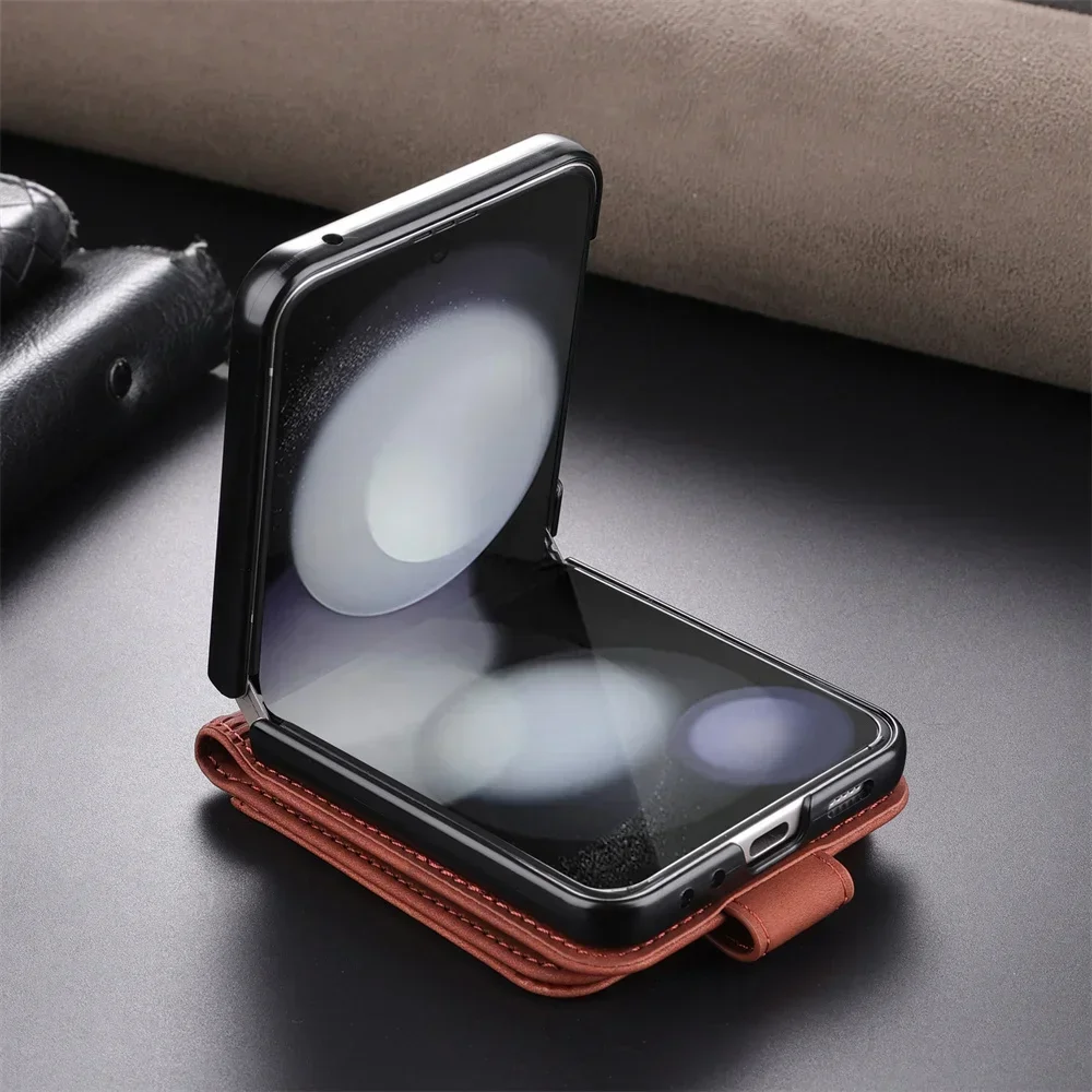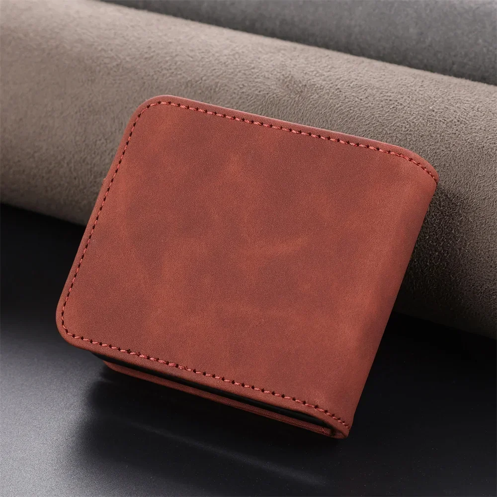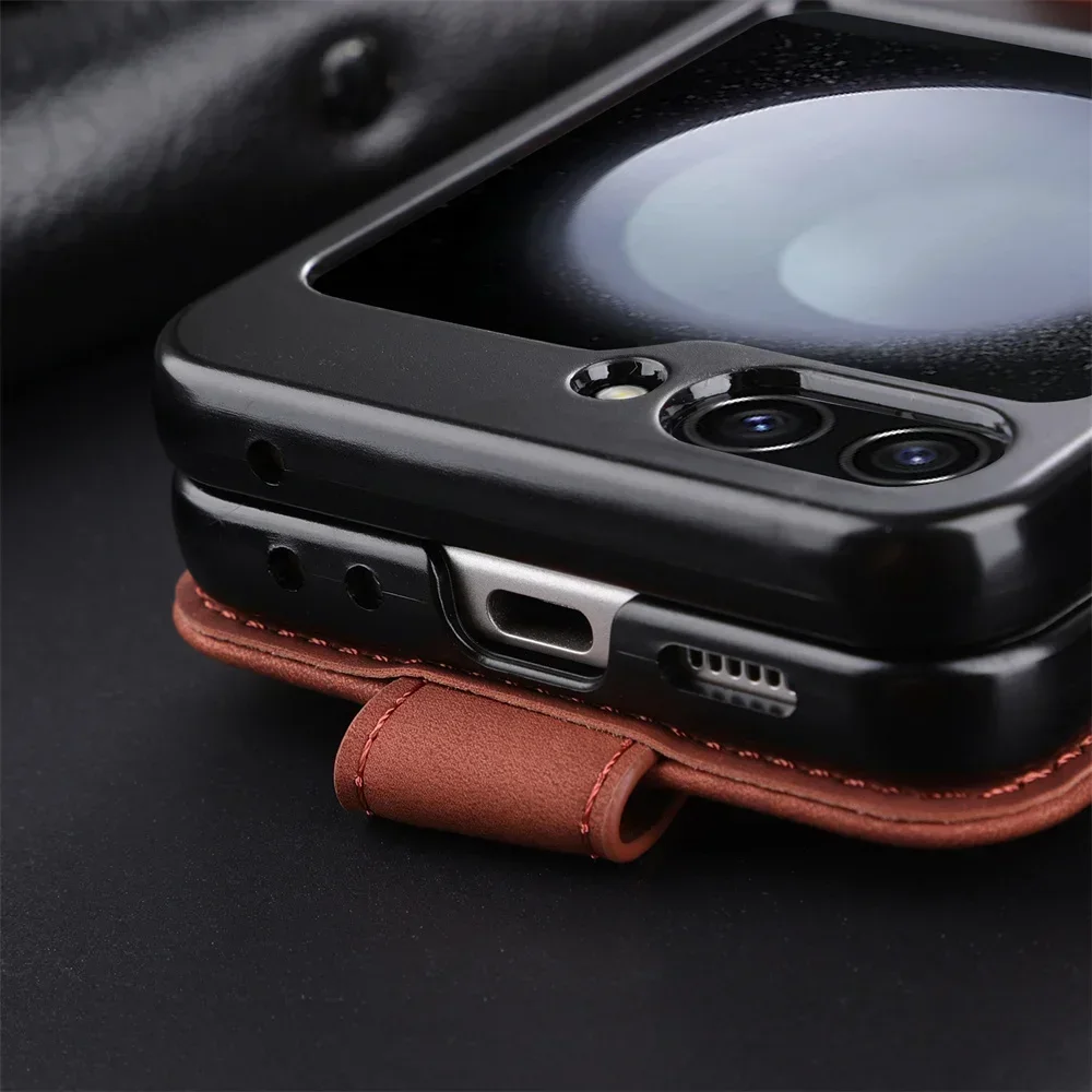 Simple Retro Pure Color Leather Phone Case For Samsung Galaxy Z Flip 7 6 5 4 3 Card Slot Bracket Wallet Shockproof Protect Cover