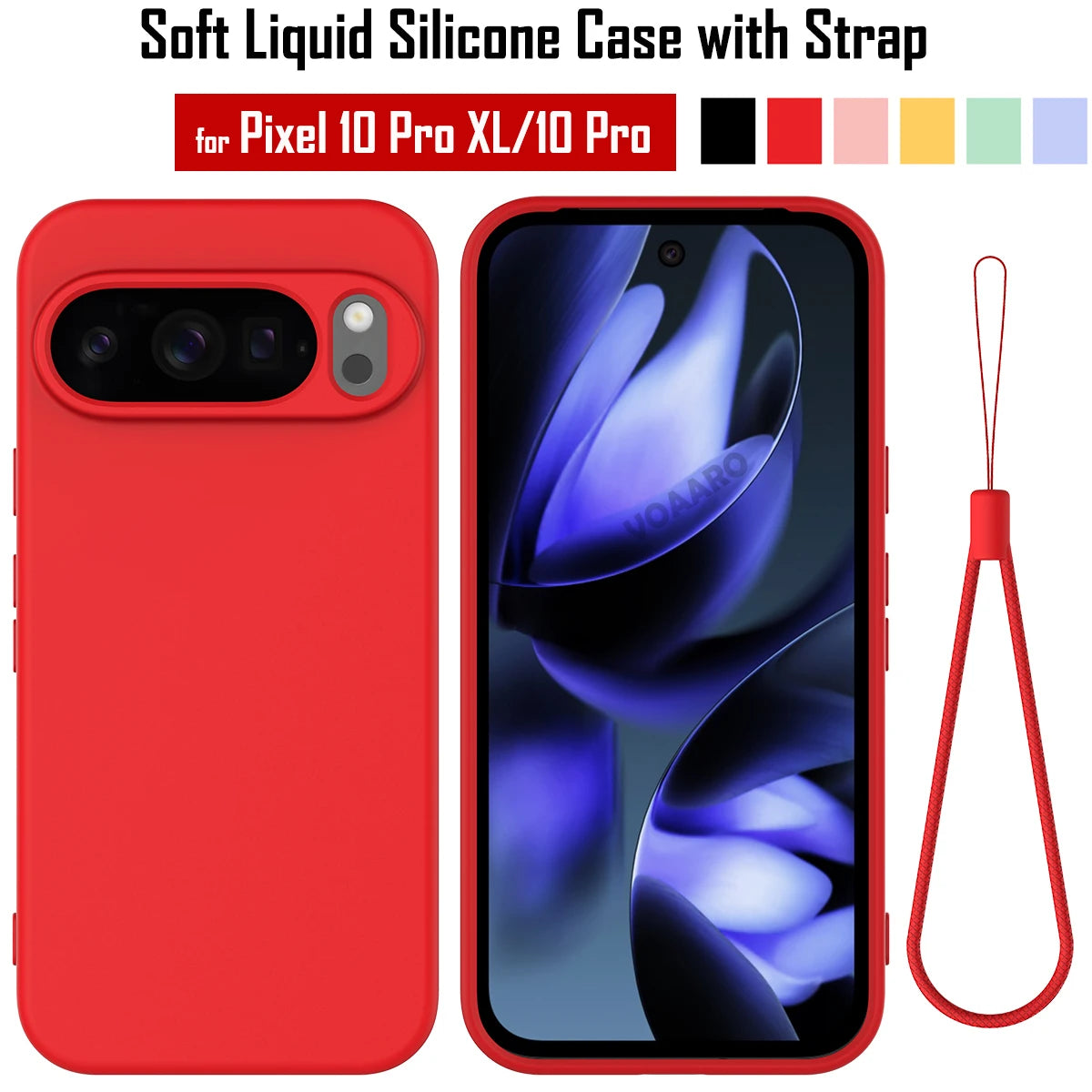 Soft Liquid Silicone Protective Funda for Google Pixel 10 Pro XL Case for Google Pixel 10 Pro Case Shockproof Cover with Strap