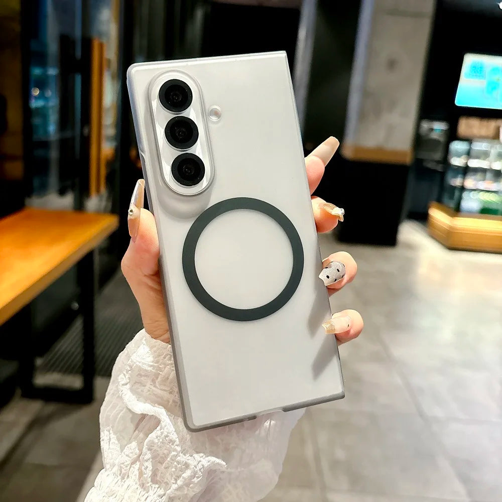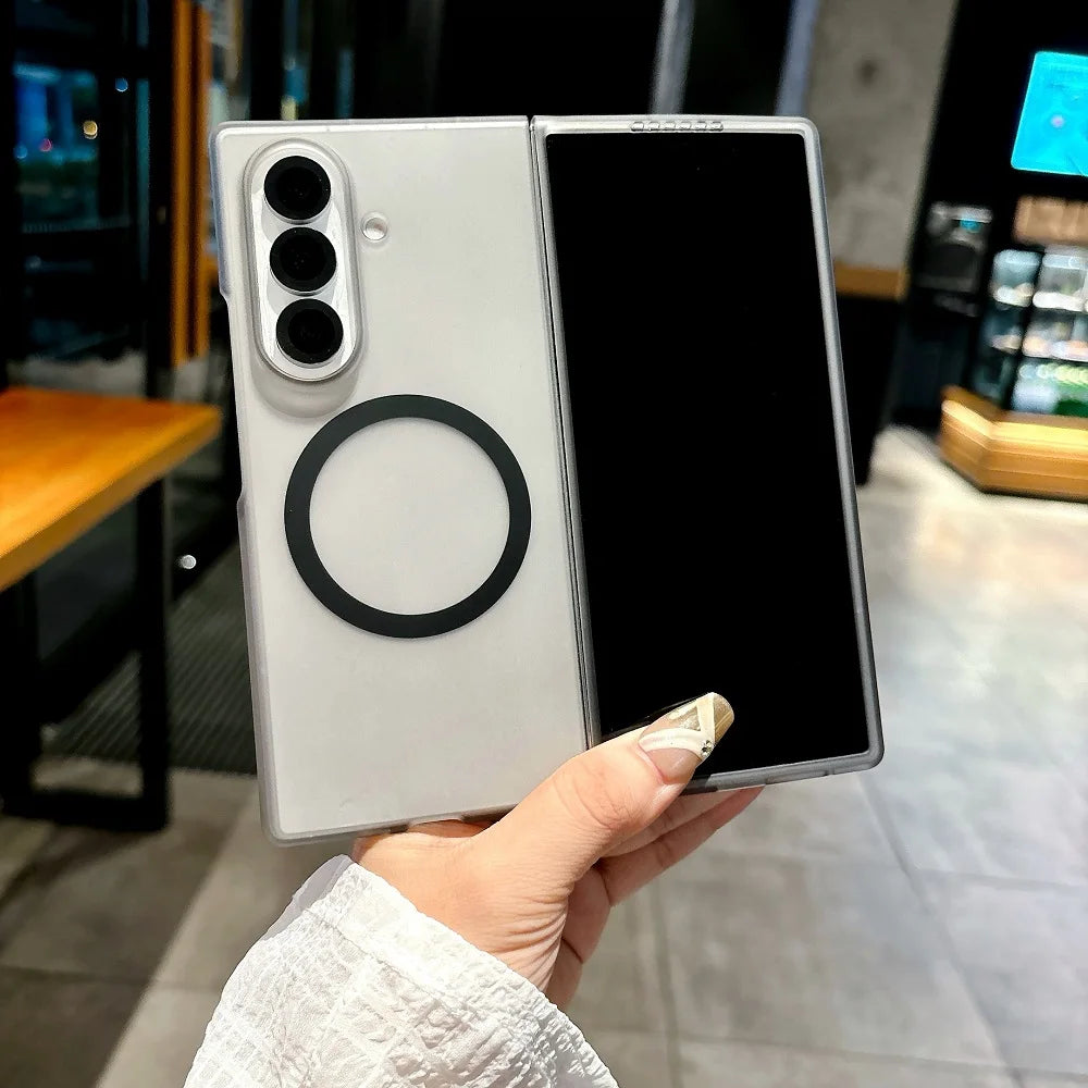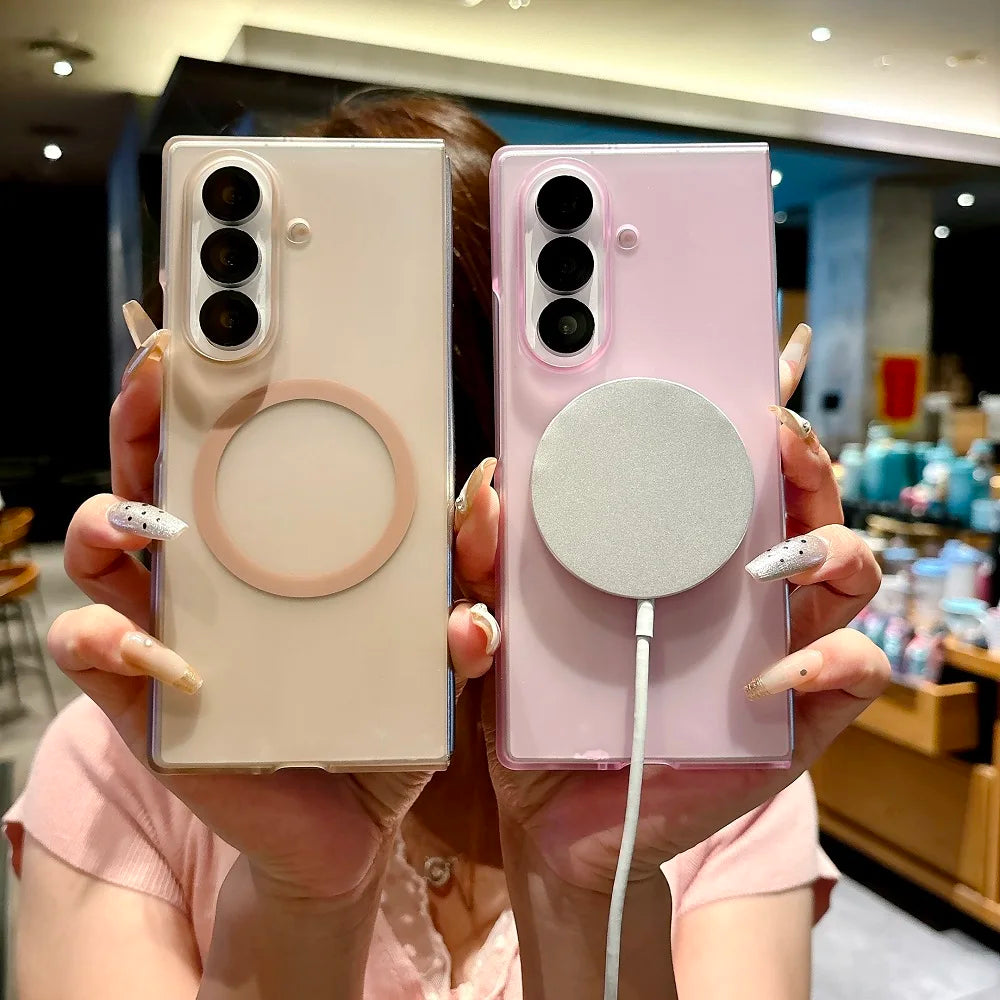 Translucent Matte For Magsafe Phone Case For Samsung Galaxy Z Fold 7 6 5 4 3 Magnetic Charging Shockproof Protect Hard PC Cover