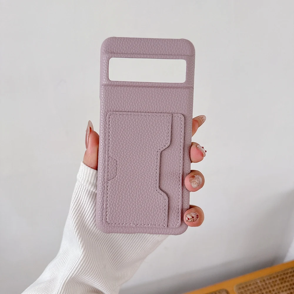 W Shape Card Slot Leather Case For Google Pixel 9 10 Pro XL 6 6A 7 7A 8 8A 9A Litchi Pattern PU Hard Back Cover