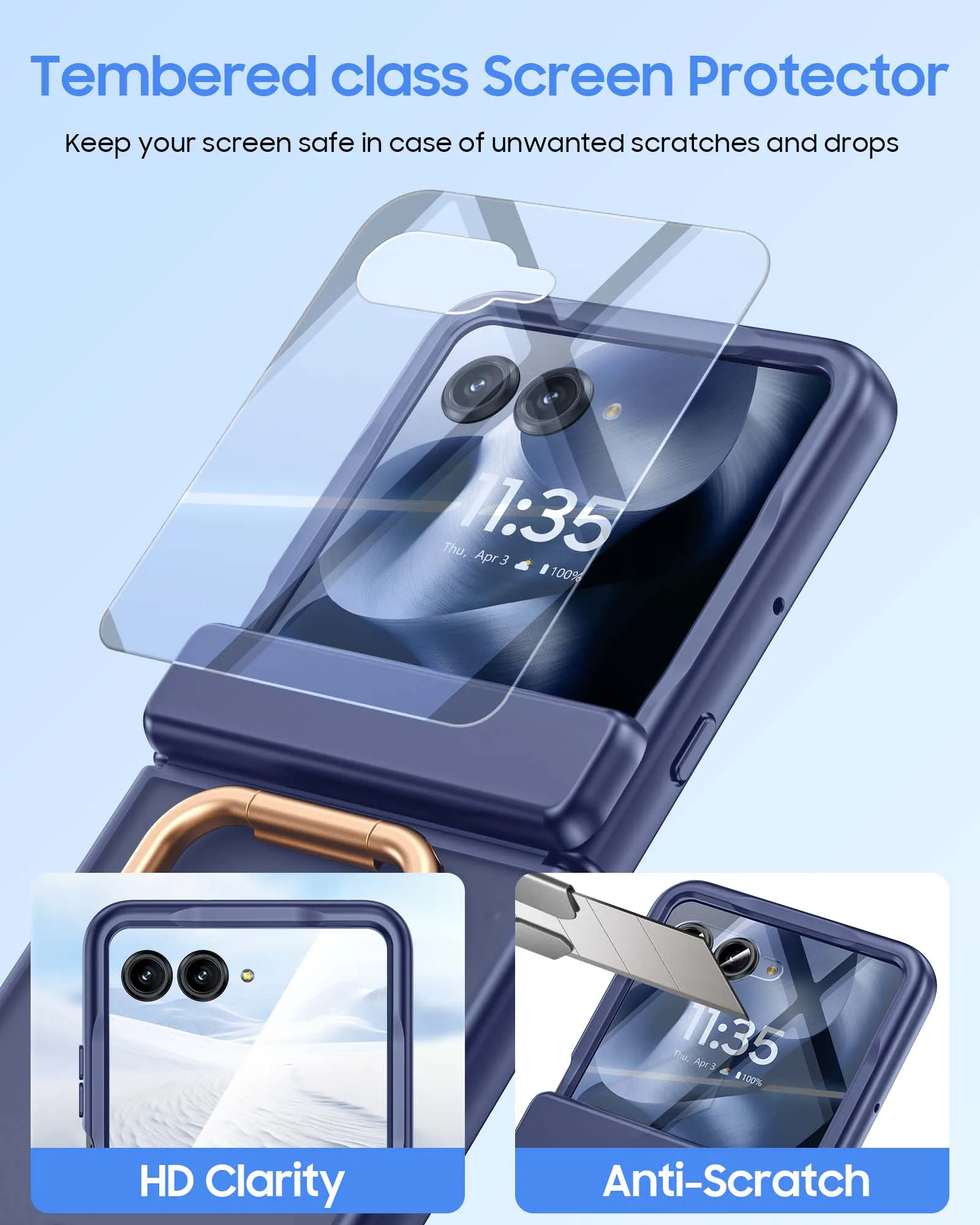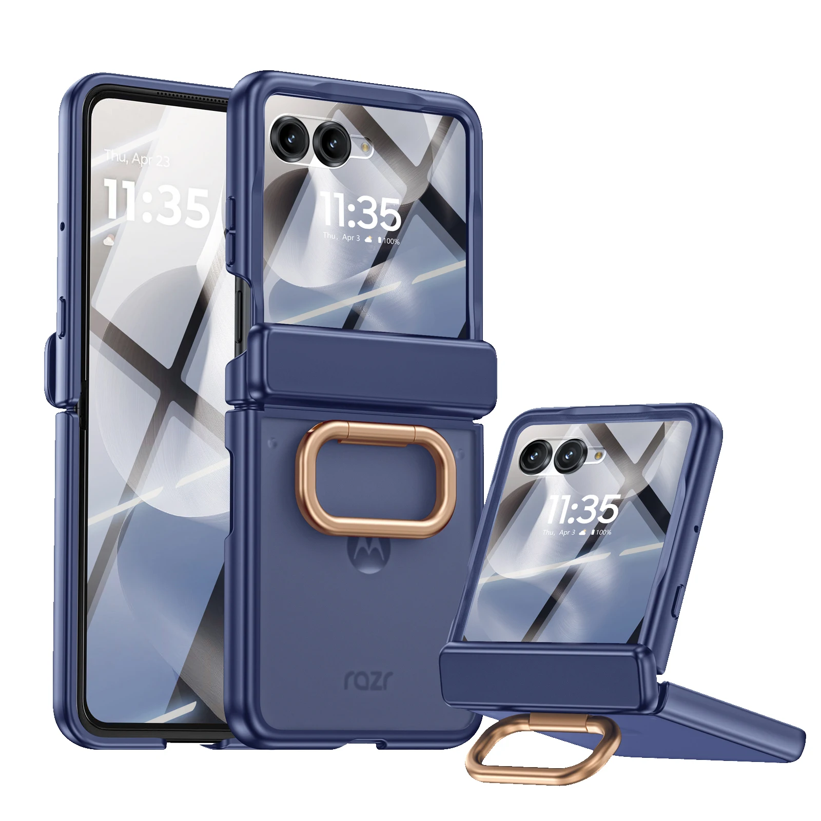 With Ring Holder,Screen Protector All-Inclusive Soft Cover Shockproof Wireless Charging for Motorola Razr 2025/2024-Blue
