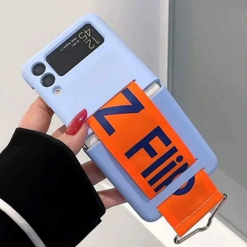 Z flip 6 7 Case Luxury Wristband For Samsung Galaxy Z Flip 7 4 5 3 6 Wrist Strap Hard Shockproof Flip4 Flip6 Zflip5 Z6 Z7 Cover