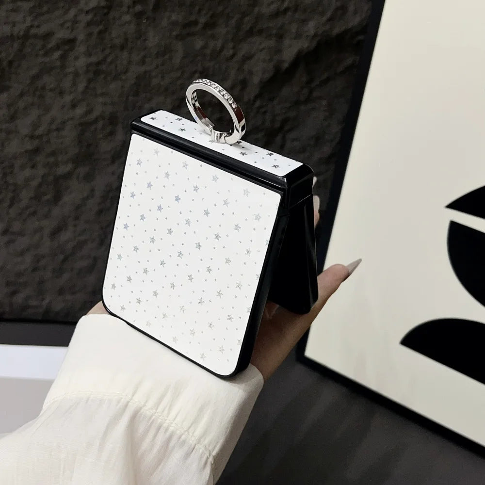 Z Flip7 Ring Buckle Bracket Love Heart Star Phone Case For Samsung Galaxy Z Flip 7 6 5 4 3 Hinge Protection Glitter Hard Cover