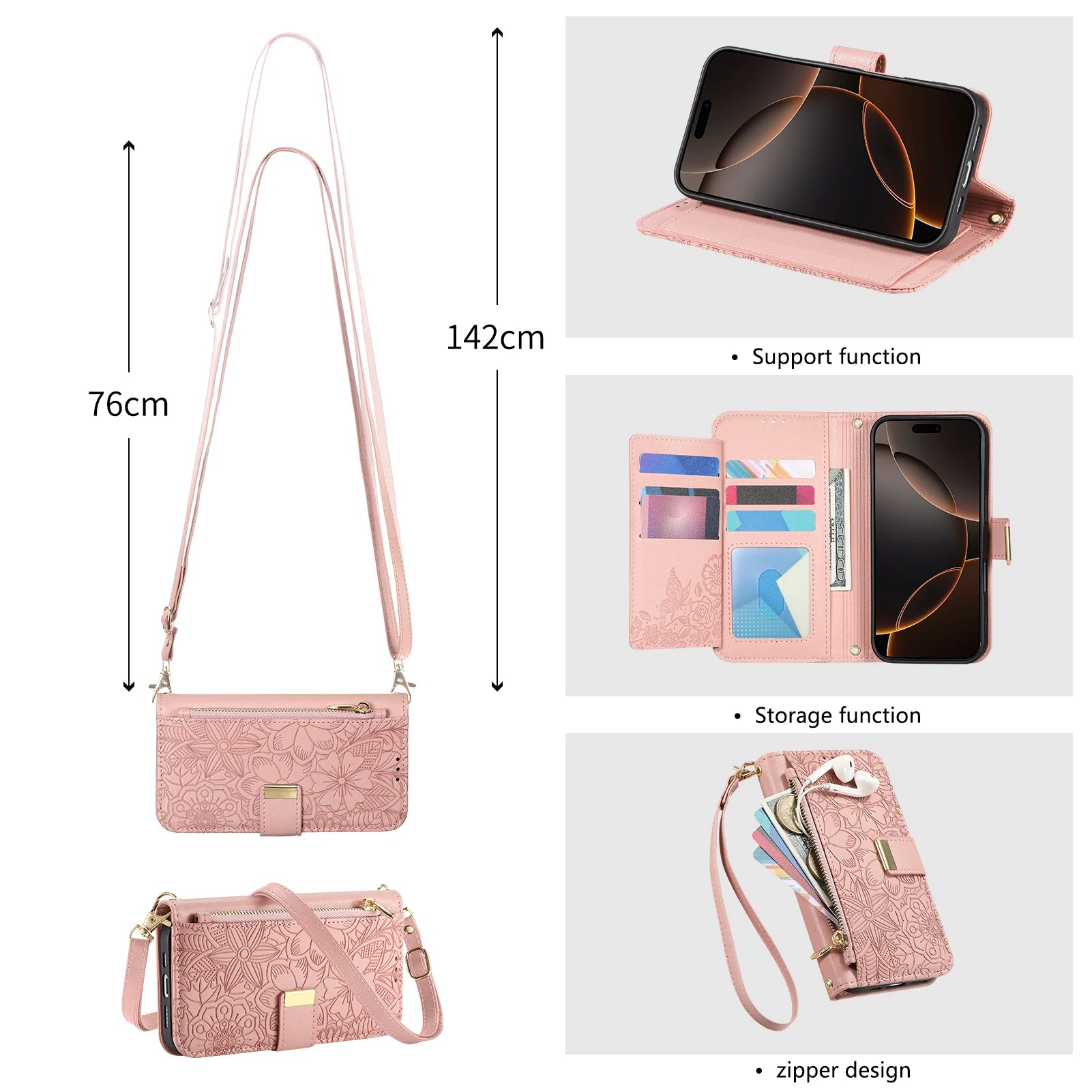 Zipper Wallet Flip Case For Google Pixel 10 Pro XL 9 9A 8 8A 7 7A 6 6A Card Holder Wrist Strap Phone Back Cover